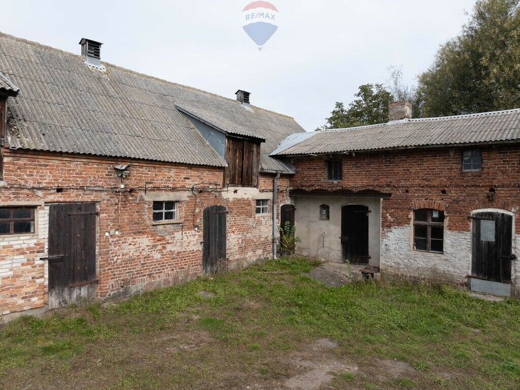Okalające zamknięte podwórze budynki gospodarcze mają w sumie